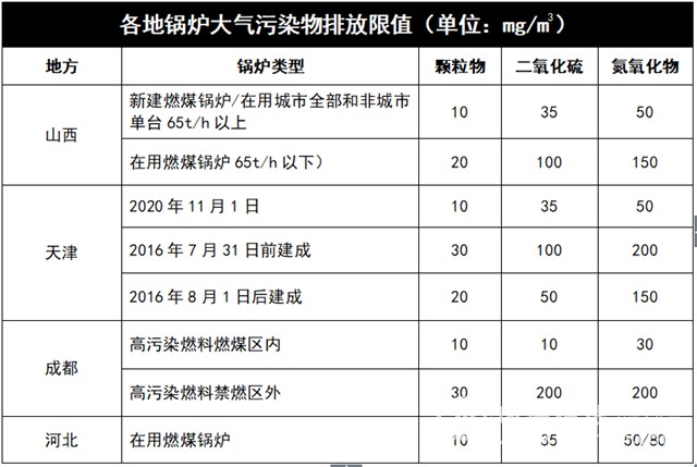 为尽快实现空气污染治理目标,各地在开云篮球_开云篮球(中国集团)股份有限公司大气污染治理上严格遵守“因地制宜”原则,很多地方的标准远远严于国家的开云篮球_开云篮球(中国集团)股份有限公司大气污染物排放标准和要求。就拿燃煤开云篮球_开云篮球(中国集团)股份有限公司看来,具体如下: